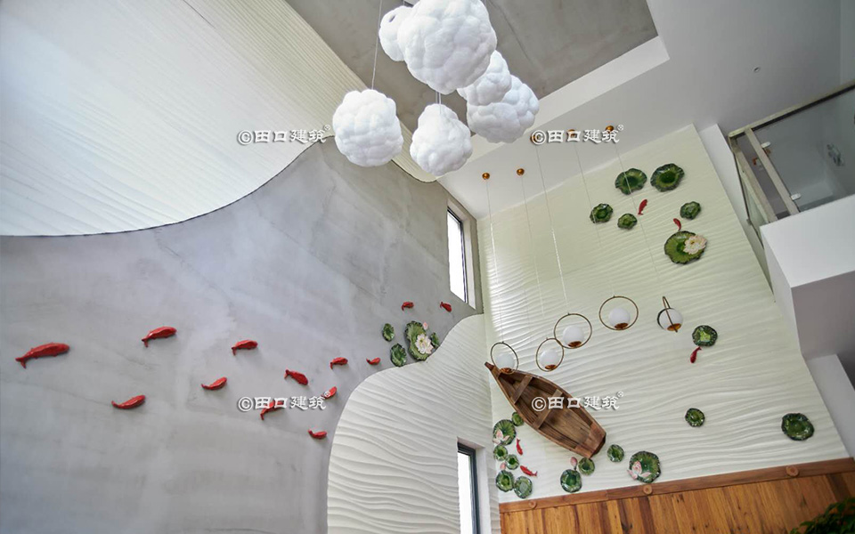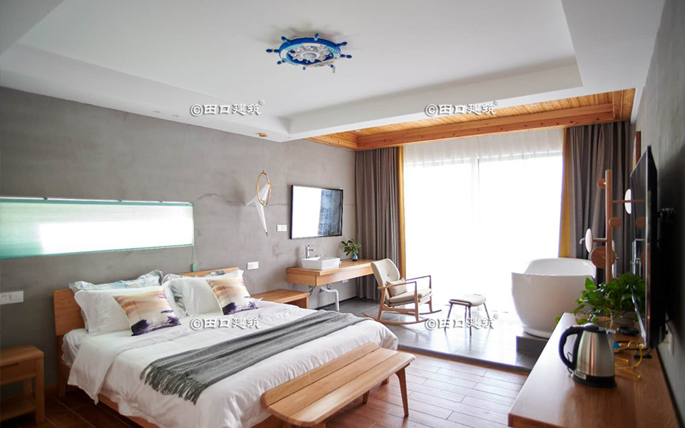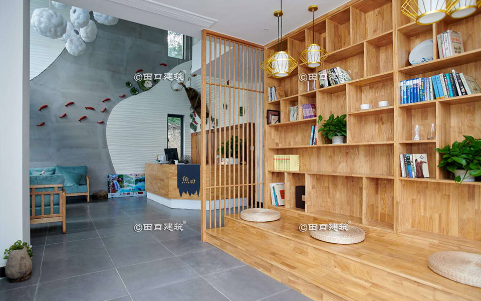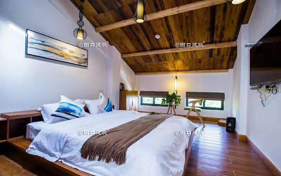 民宿前廳、大堂、服務(wù)臺、三個單人套間;